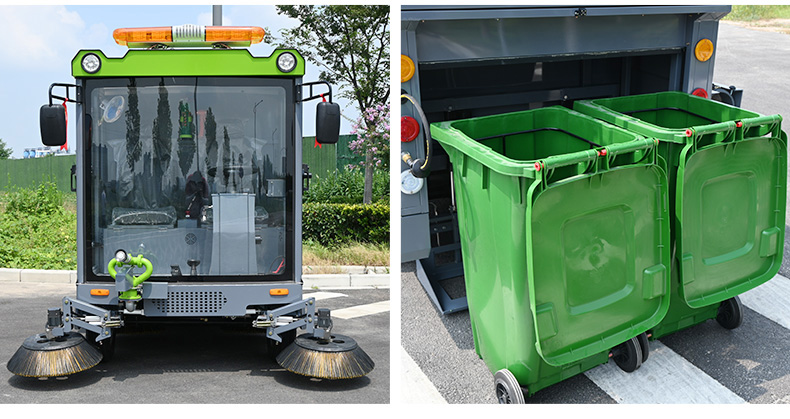 莱特LT-G90型全封闭四轮驾驶式扫地车,此车辆为纯吸款高性能车辆、无滚刷结构,使用效果更稳定。车辆具备智能语音系统,配备高压清洗和高压雾炮功能,清扫宽度2450mm,满电工作时间为3-5小时,工作效率35000㎡/h,采用的是特种车专用磷酸铁锂电池,配置长度4米可拆卸手持吸管,吸净率高,作业速度快。后置双240L标准垃圾桶,收集满灰尘垃圾之后,可以直接更换垃圾桶,效率高,无需人工倾倒垃圾。高压雾炮射程可达10米以上,可对作业环境高效的降尘,还可以用于绿植养护和环境消杀。高压水枪可以对地面顽固污渍进行清洁,还可以冲洗路牙石,为绿植浇水,工作之余,还可以用高压水枪清洗车辆。应用场景为:厂区、车间、公园、街道、物业小区、码头、学校、机场等需要大面积清扫的区域区域。